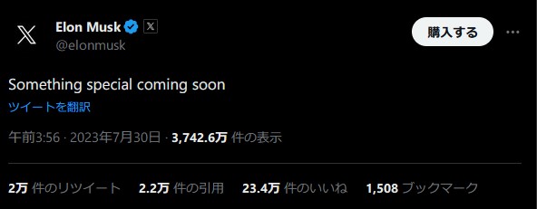 X(Twitter)、もうすぐ特大の発表へwwwwイーロン・マスク「Something special coming soon」