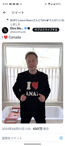 I ♥️ Canada pic.twitter.com/95321VIi8r— Elon Musk (@elonmusk) July 31, 2023