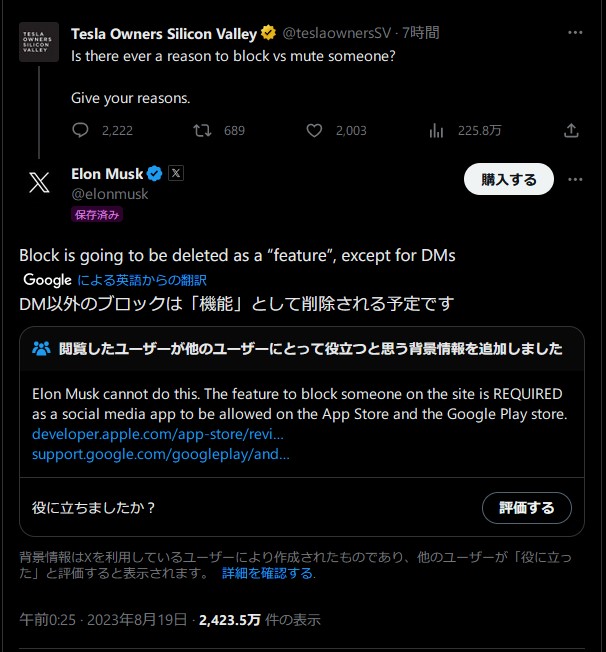 イーロン・マスク「X(Twitter)のブロック機能廃止するわ」