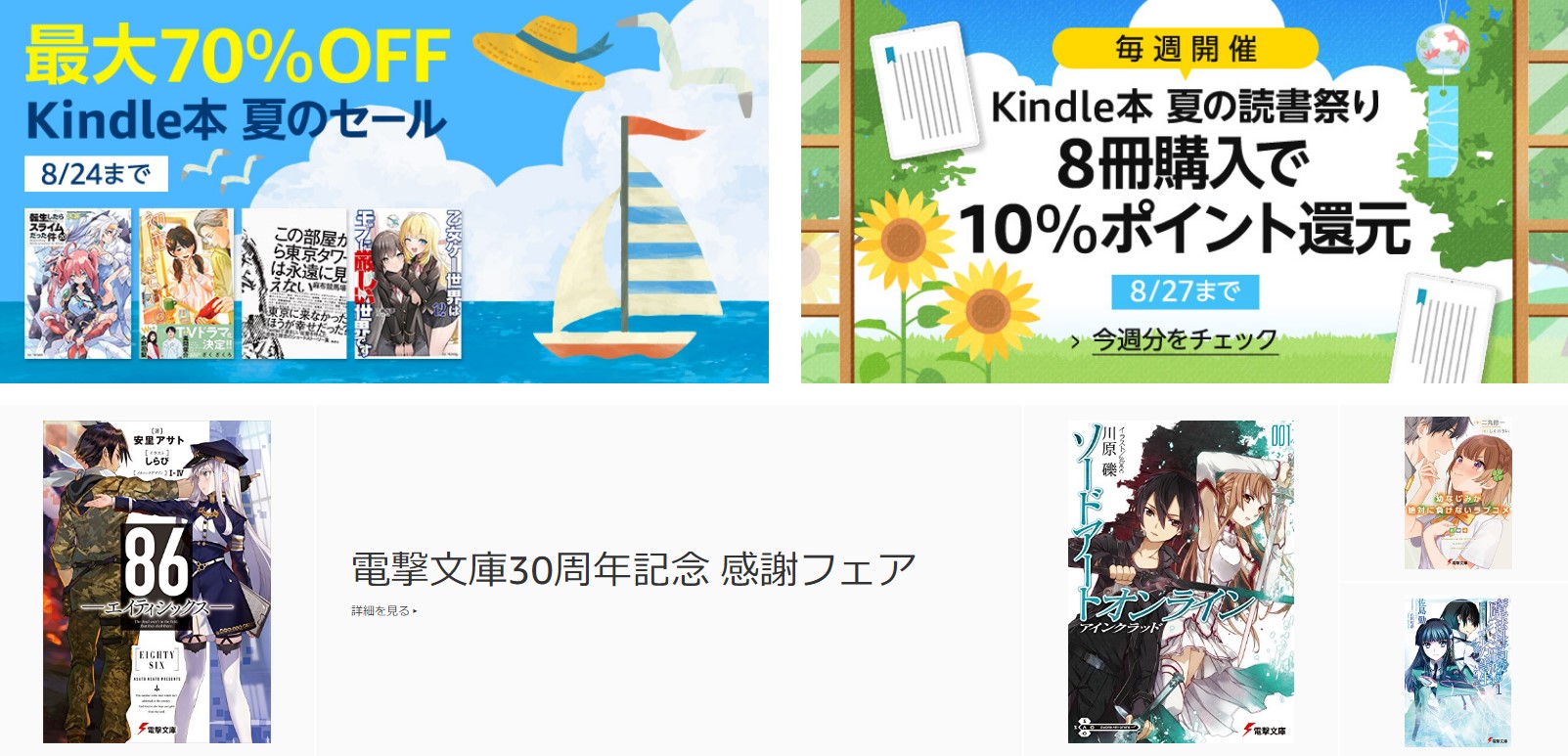 Kindle本 夏の読書祭り 8冊購入で10%ポイント還元(8/27まで毎週開催 3週目は8/20まで)