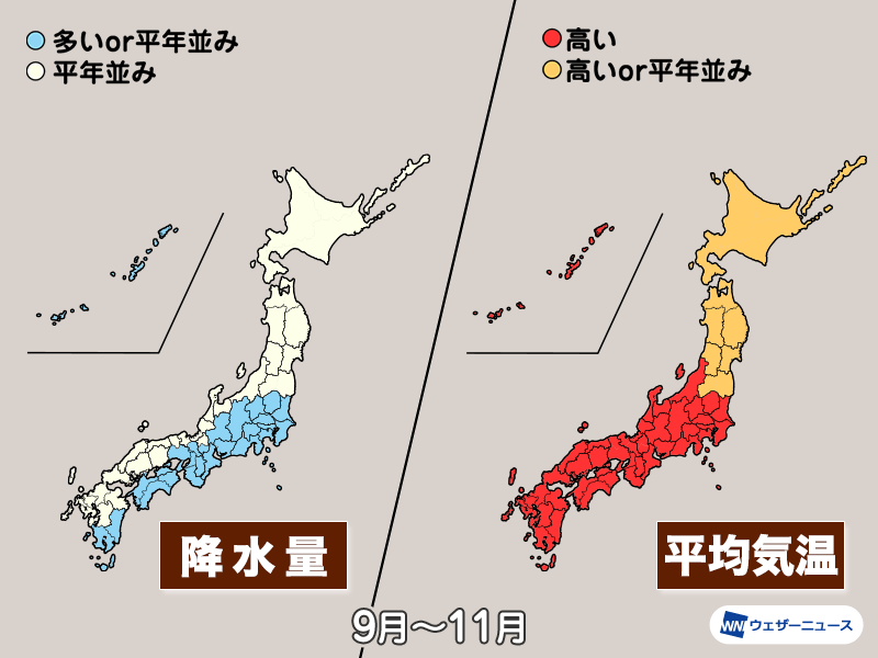気象庁3か月予報秋も全国的に気温高く季節の進みは遅い