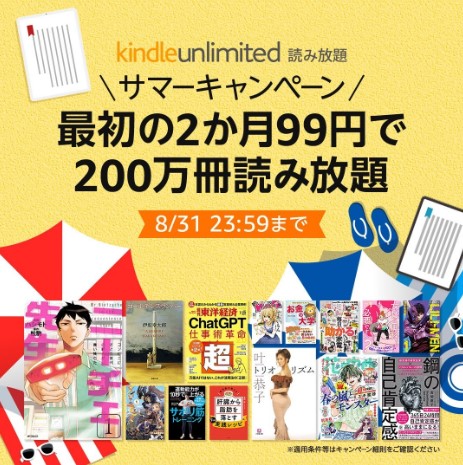 「サマーキャンペーン Kindle Unlimited 2か月99円」がもうすぐ終了