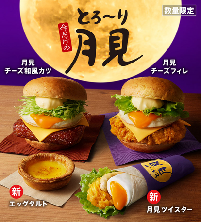 【画像あり】バーガー屋さん、揃いも揃って月見バーガーを出す