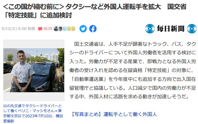 タクシーなど外国人運転手を拡大 国交省「特定技能」に追加検討