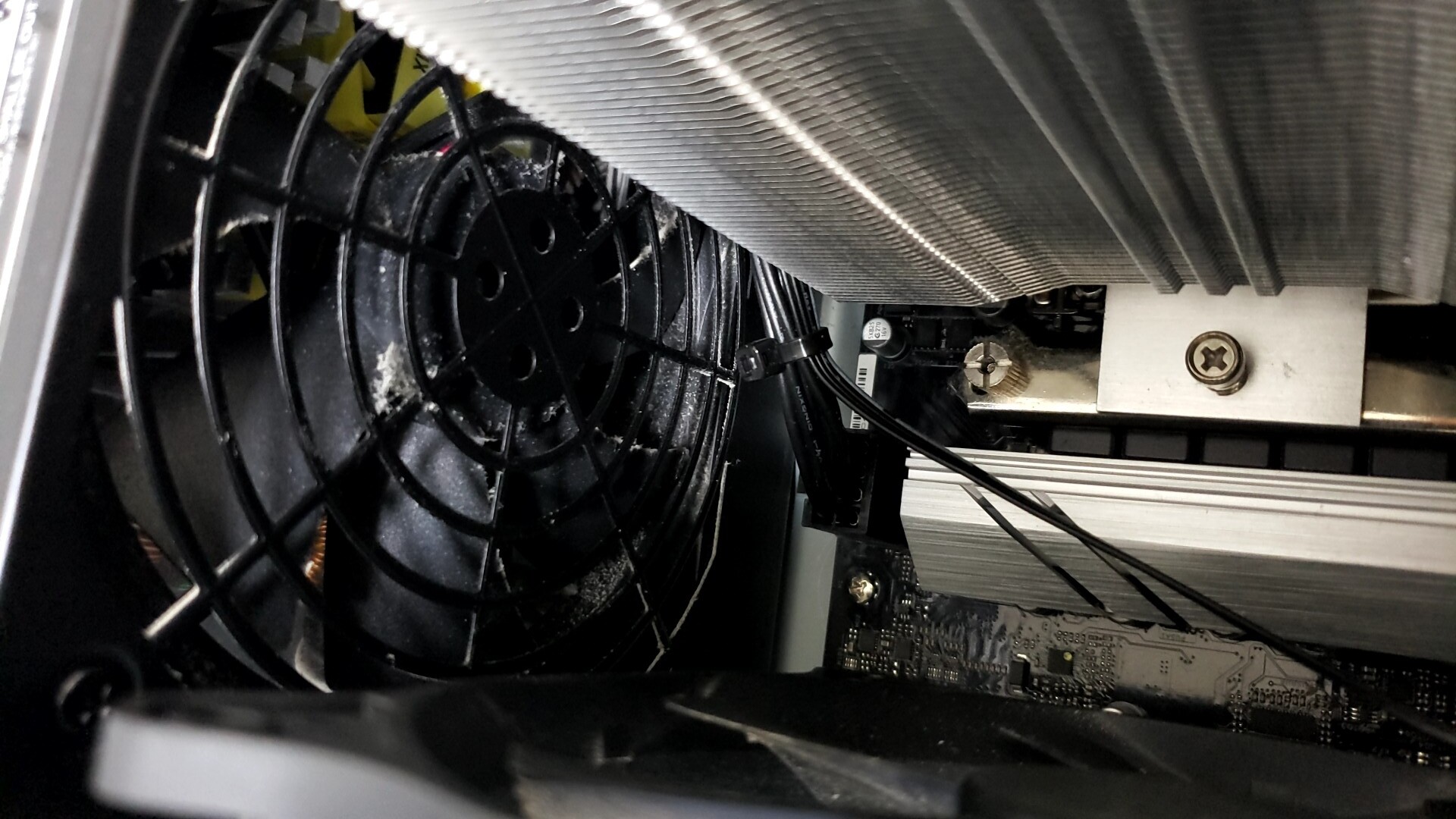 20分かけて電源のファン以外のホコリは綿棒で取ったけど電源だけは箱に入っとって無理や