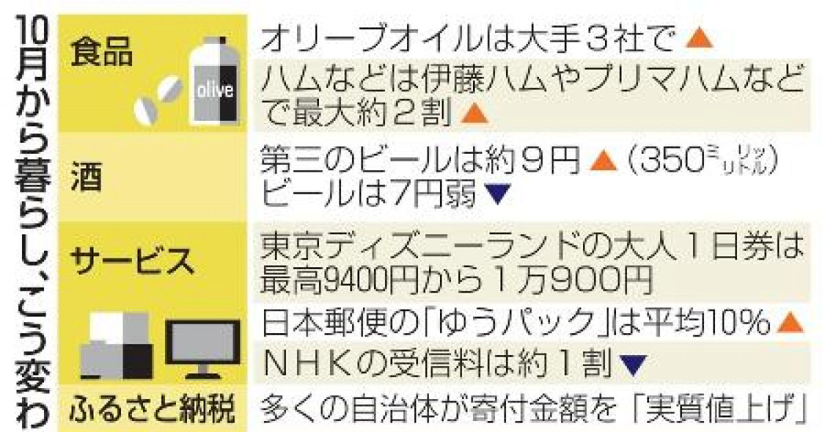 ![]() | 家計負担10月から重く 食品4500超値上げ (出典:共同通信) |