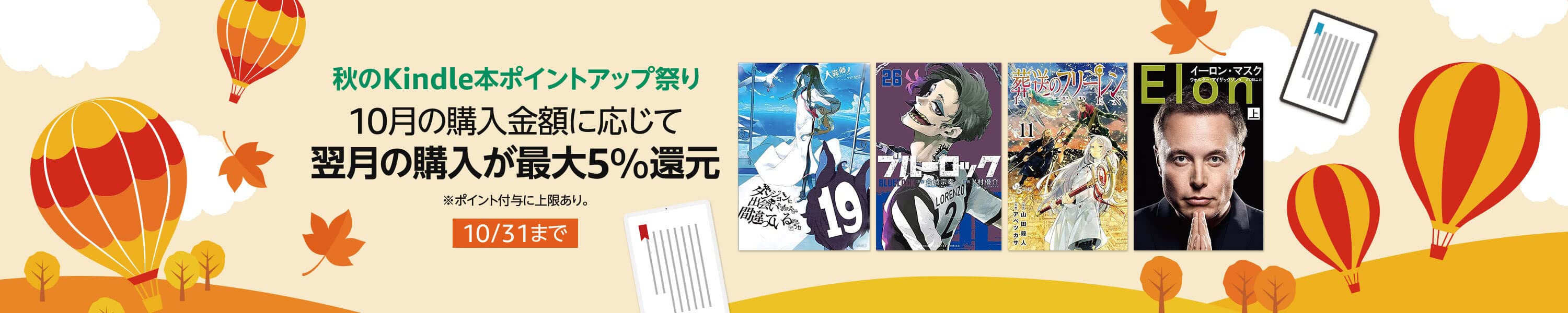 Kindleストアが新タイプのキャンペーンを開始 10月の購入金額に応じて翌月の購入が最大5%還元※対象者限定
