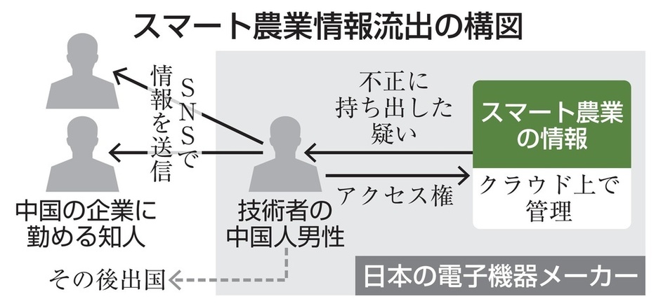 日本のメーカーに勤務していた中国人、スマート農業の情報を不正持ち出し 警察が事情聴取した後に出国