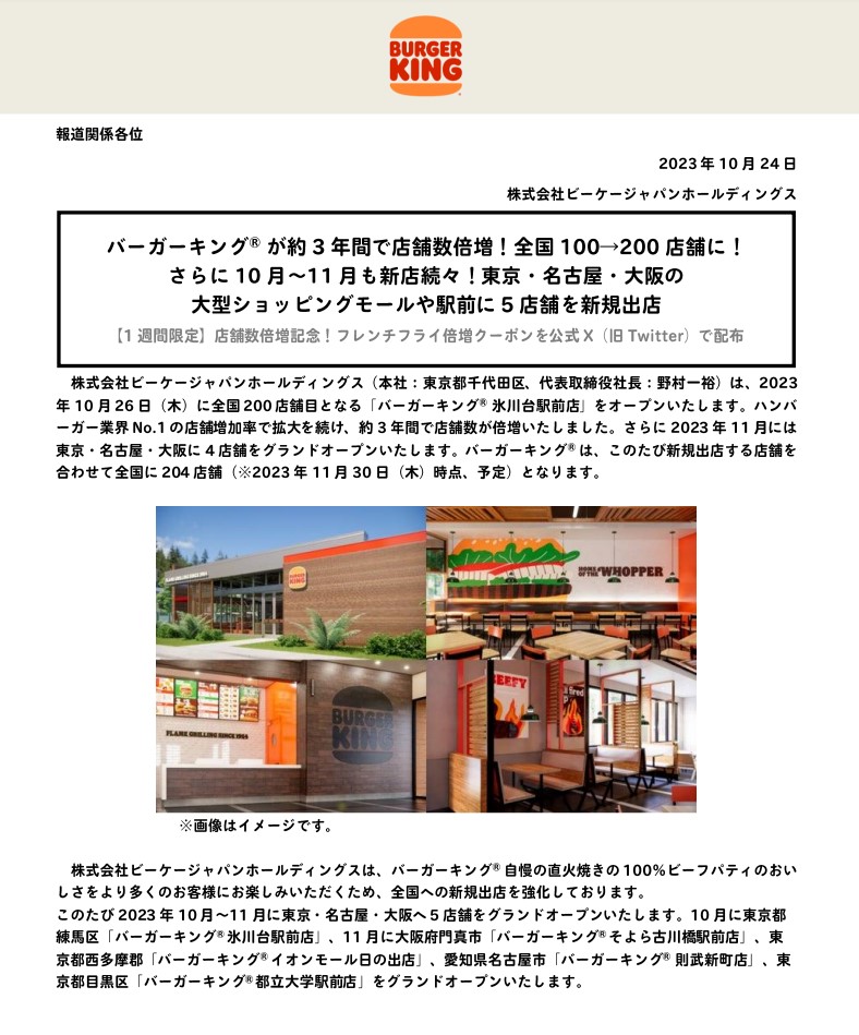 【朗報】バーガーキング、204店舗達成!店がある!