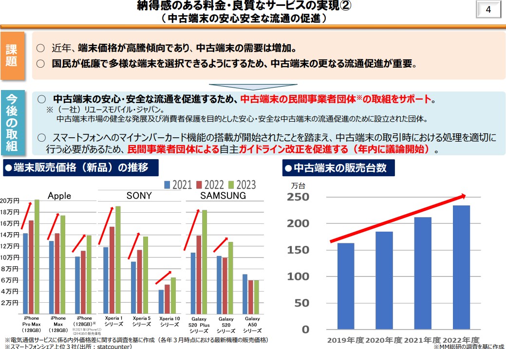 総務省「過度な割引禁止」「中古スマホの安心・安全な流通の促進」「通信料値下げ」