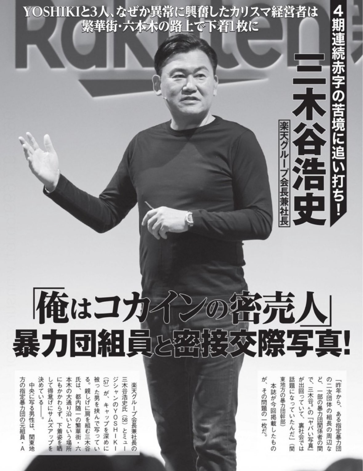 楽天G・三木谷浩史会長、反社交際を報じた光文社を即日訴訟 4億4480万円の損害賠償請求