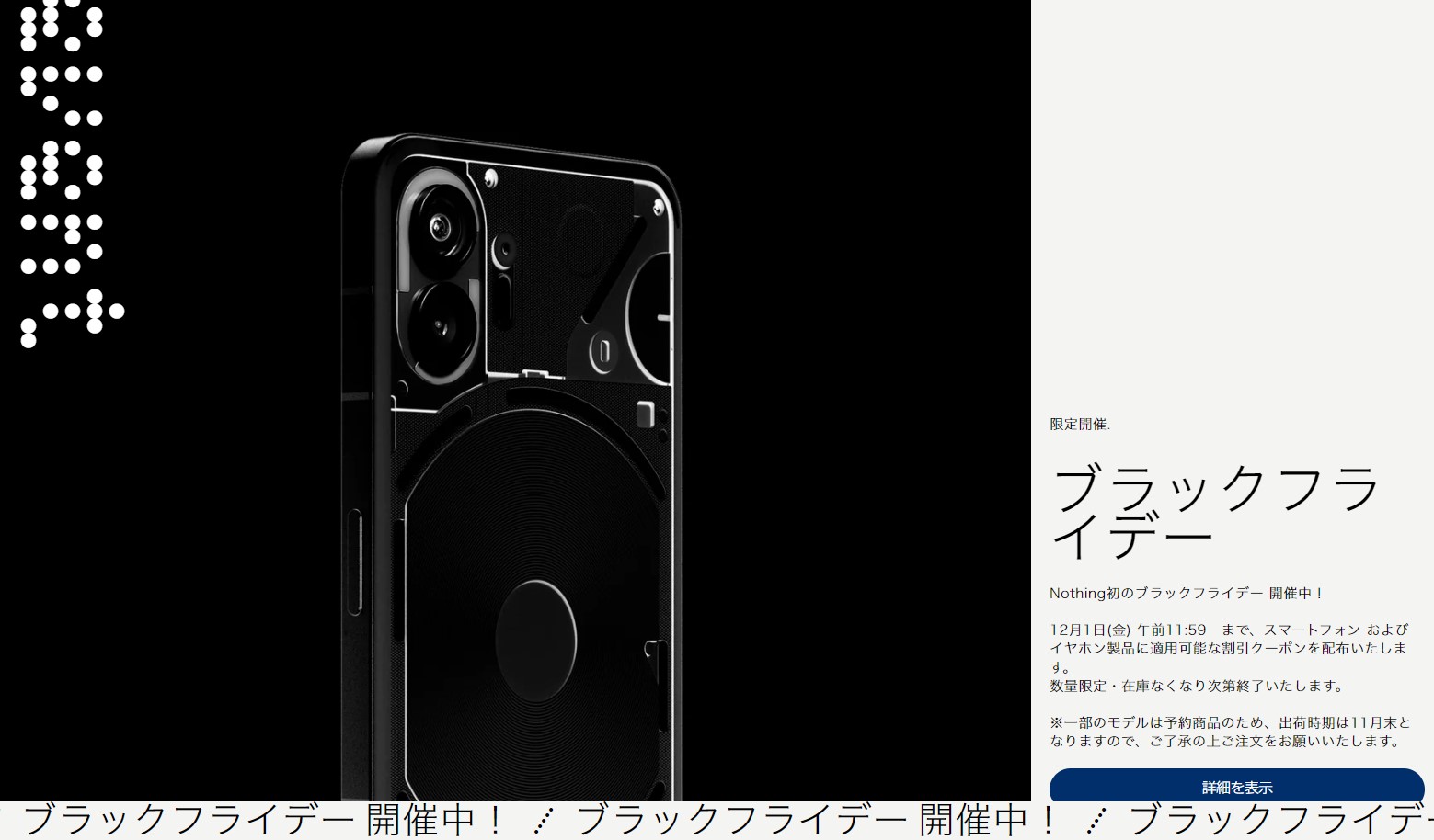 Nothing、ブラックフライデーセール開始 スマホ「Phone(1)/(2)」1万円オフ イヤホン「ear(1)/(2)/(Stick)」最大5000円オフ