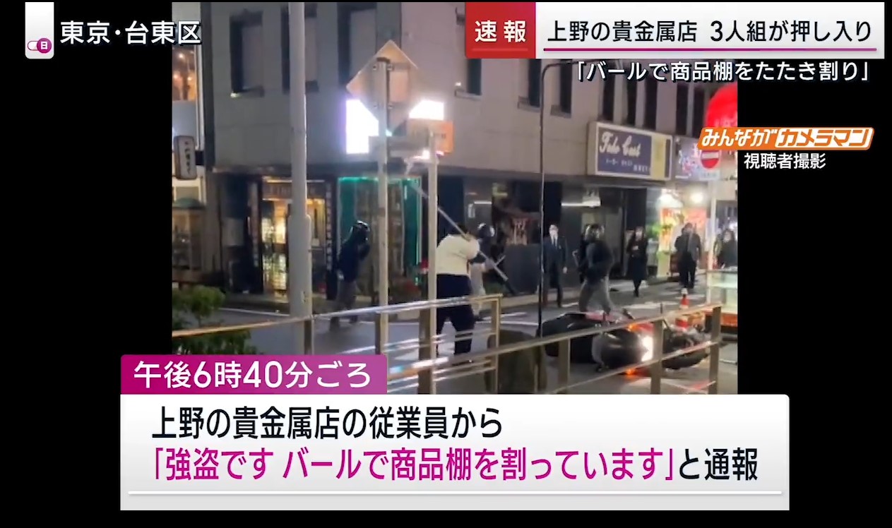 宝飾店に3人組押し入り…店員に抵抗され何もとらず逃走 東京・上野