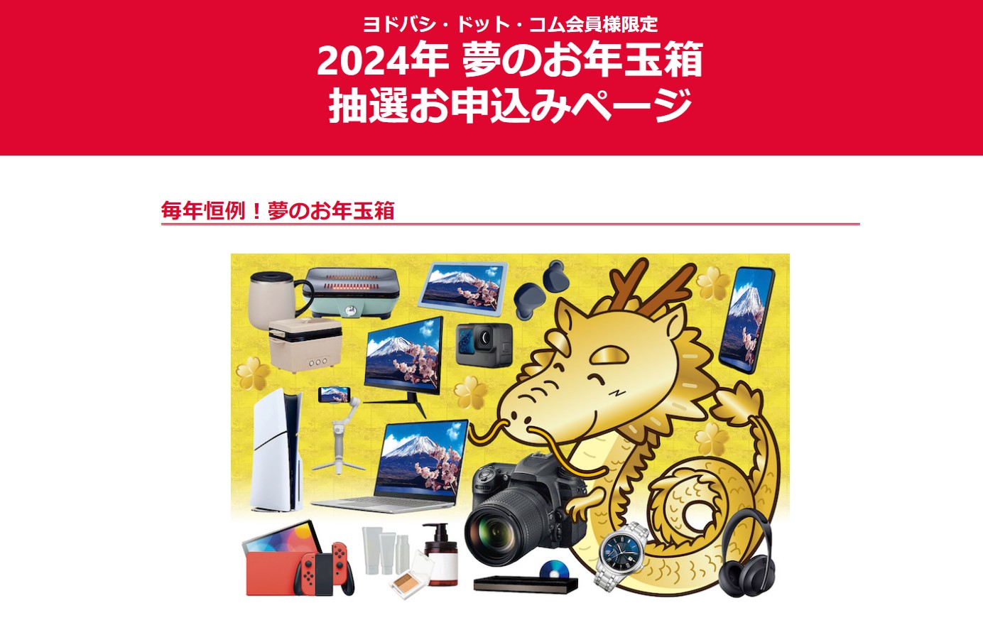 ヨドバシカメラの福袋「2024年 夢のお年玉箱」の抽選申し込み受付は3日23時59分まで