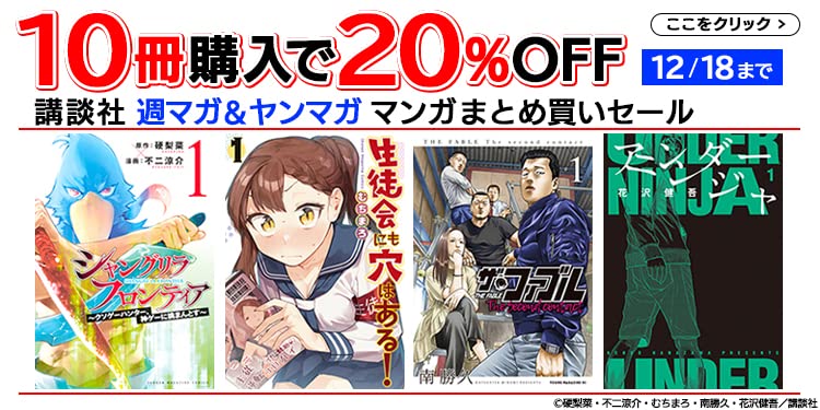 【セール】Kindleストア、講談社の週マガ・ヤンマガが対象の「マンガ10冊まとめ買いで20%オフ」を開始 月替りセールも更新