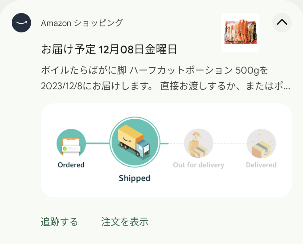 Amazonの500g980円のタラバガニ発送キターーー🦀