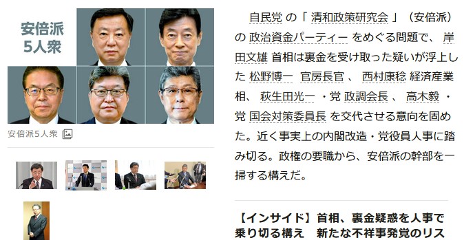 松野・西村・萩生田・高木氏更迭へ 世耕氏も交代 安倍派5人衆一掃