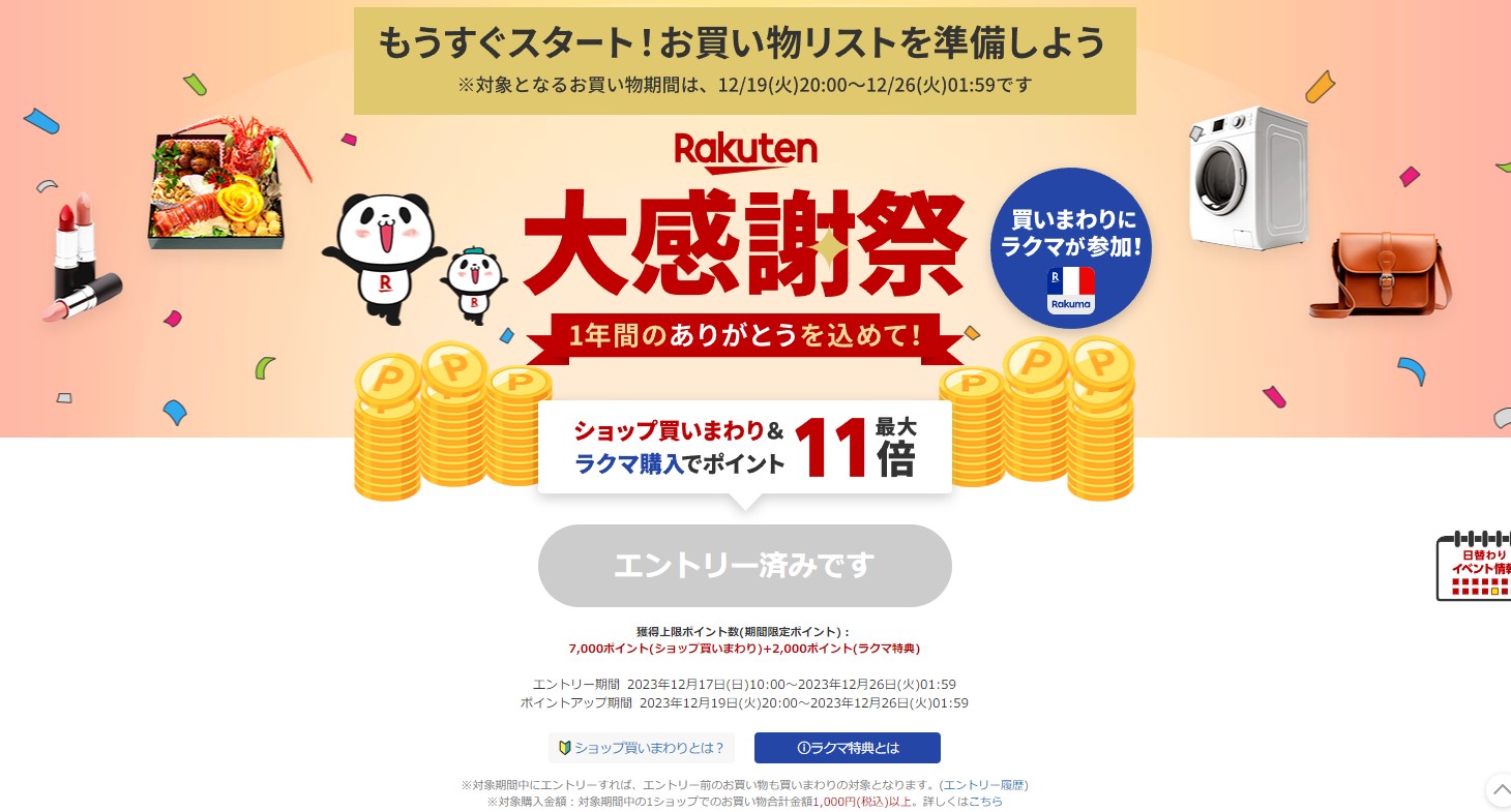 楽天市場、6000円以上で使える390円オフクーポン配布中 全ショップ対象1000円以上購入で来年1月~2月に使えるお年玉1000円オフクーポンプレゼントキャンペーンも開始 2024.12.25