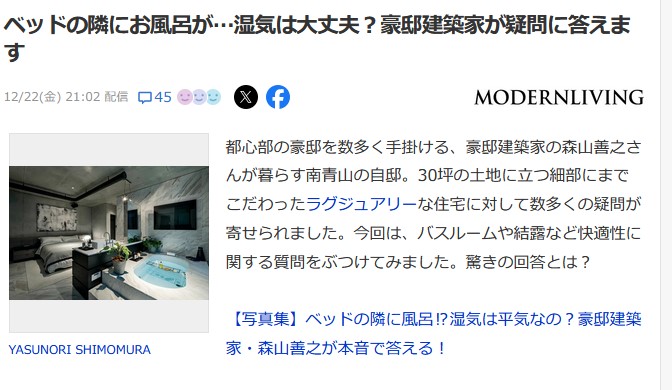 ベッドの隣にお風呂が…湿気は大丈夫?豪邸建築家が疑問に答えます