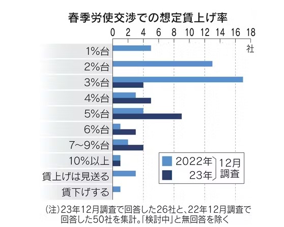 2024年春の賃上げ、「5%台」が最多 日経新聞が国内主要企業100社の社長にアンケート