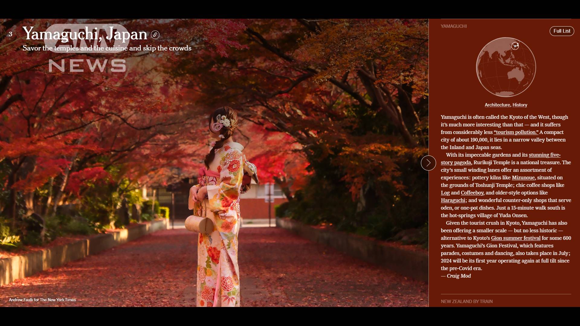 ニューヨーク・タイムズ「2024年は日本の山口市が熱い!」 2024年に行くべき52カ所で3番目に選ばれる