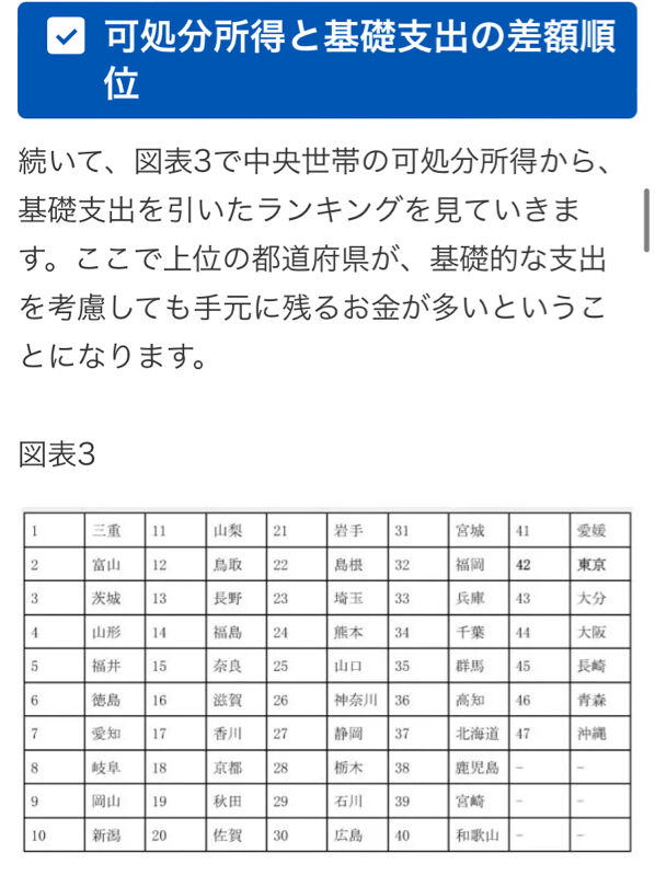 【画像あり】「収入-固定費で一番金が残る県」1位三重県、7位愛知県、8位岐阜県(全て名古屋圏)、42位東京都…
