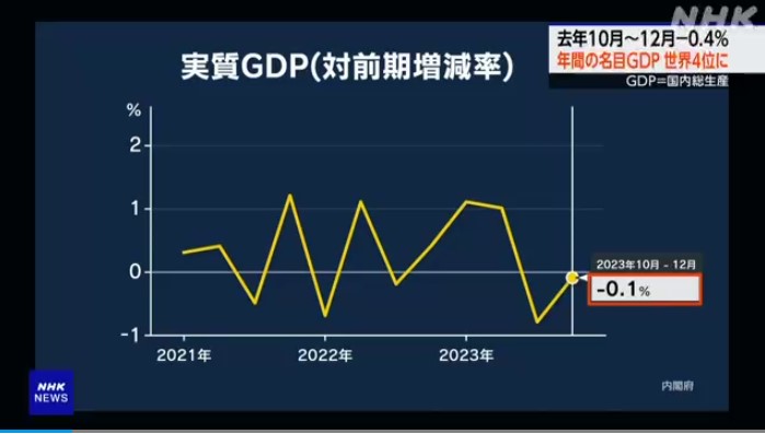 【悲報】日本、実質GDPが2期連続マイナスで予想外の景気後退入り 2023年の名目GDPは世界3位から4位に転落