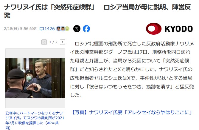 ナワリヌイ氏死去 ロシア当局「突然死症候群で事件性はない」 ロシア国内で支持者ら献花 340人以上拘束