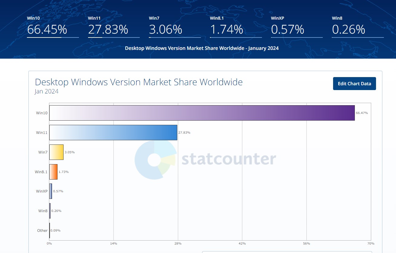 https://gs.statcounter.com/windows-version-market-share/desktop/worldwide/#monthly-202401-202401-bar
