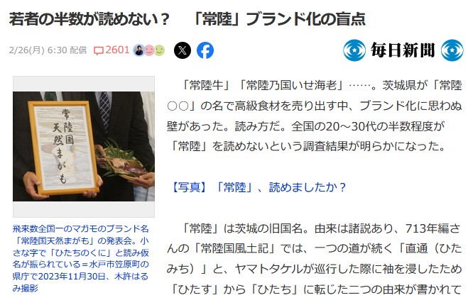 若者の半数が読めない? 「常陸」ブランド化の盲点