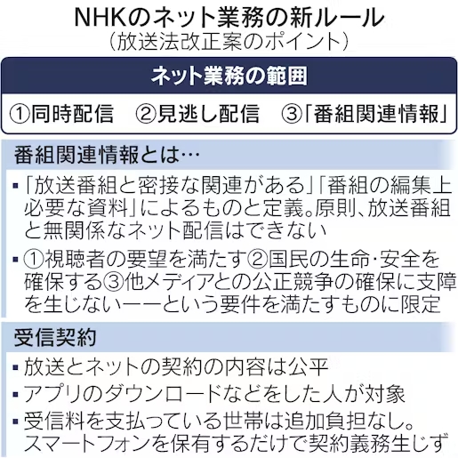 NHKネット、放送と内容・負担「同一」に 放送法改正案