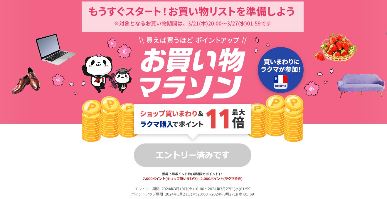 2024/03/21 20:00:00 – 2024/03/27 01:59:59 お買い物マラソン