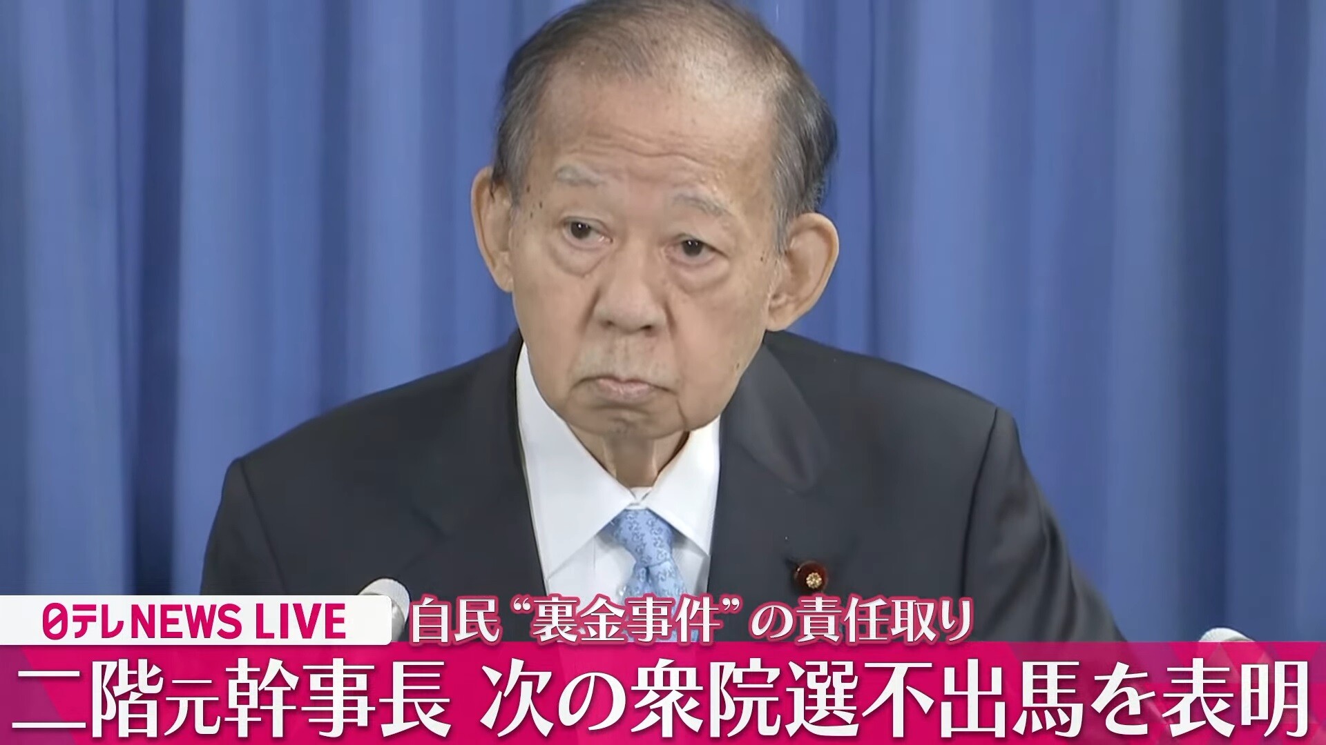 自民党・二階俊博元幹事長、次期衆院選の不出馬を表明 自民党の裏金事件の責任取り