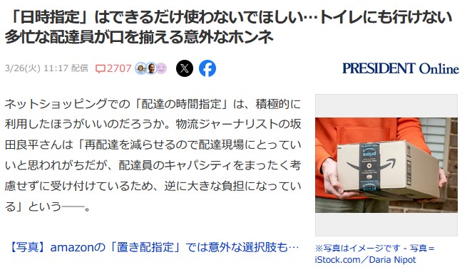 「日時指定」はできるだけ使わないでほしい…トイレにも行けない多忙な配達員が口を揃える意外なホンネ