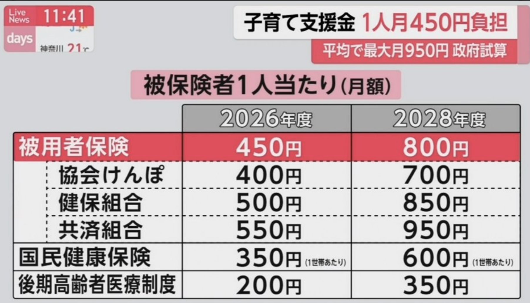 こども・子育て支援金、2026年度は平均450円程度 なお2028年度には平均800円に