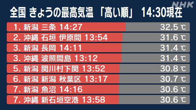 新潟県で30度超える 沖縄県除きことし全国初の真夏日に