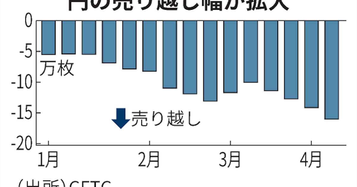 【日米金利差拡大で】ヘッジファンドなど投機筋の円売り・ドル買いが加速、17年ぶり高水準