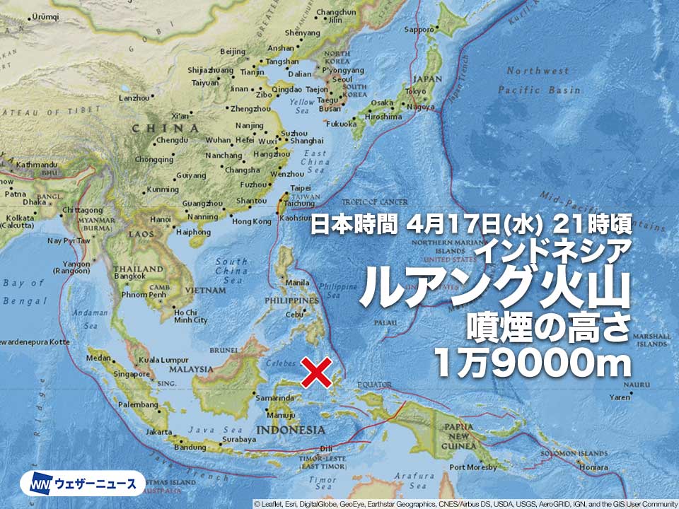 インドネシア・ルアング火山で大規模な噴火 噴煙は高度1万9000mに