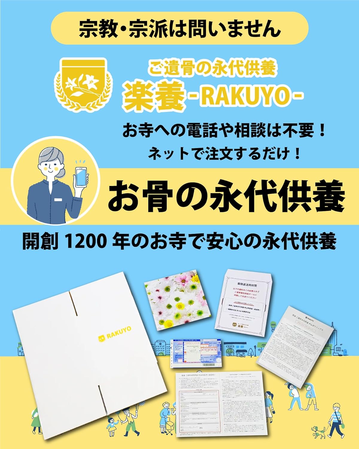 [2024年4月24日より販売開始]楽養【ネットで出来るお骨の永代供養】宗教・宗派不問の遺骨梱包キット |キットを買う→骨を送る→永代供養が出来る|手元供養用遺骨入れ
