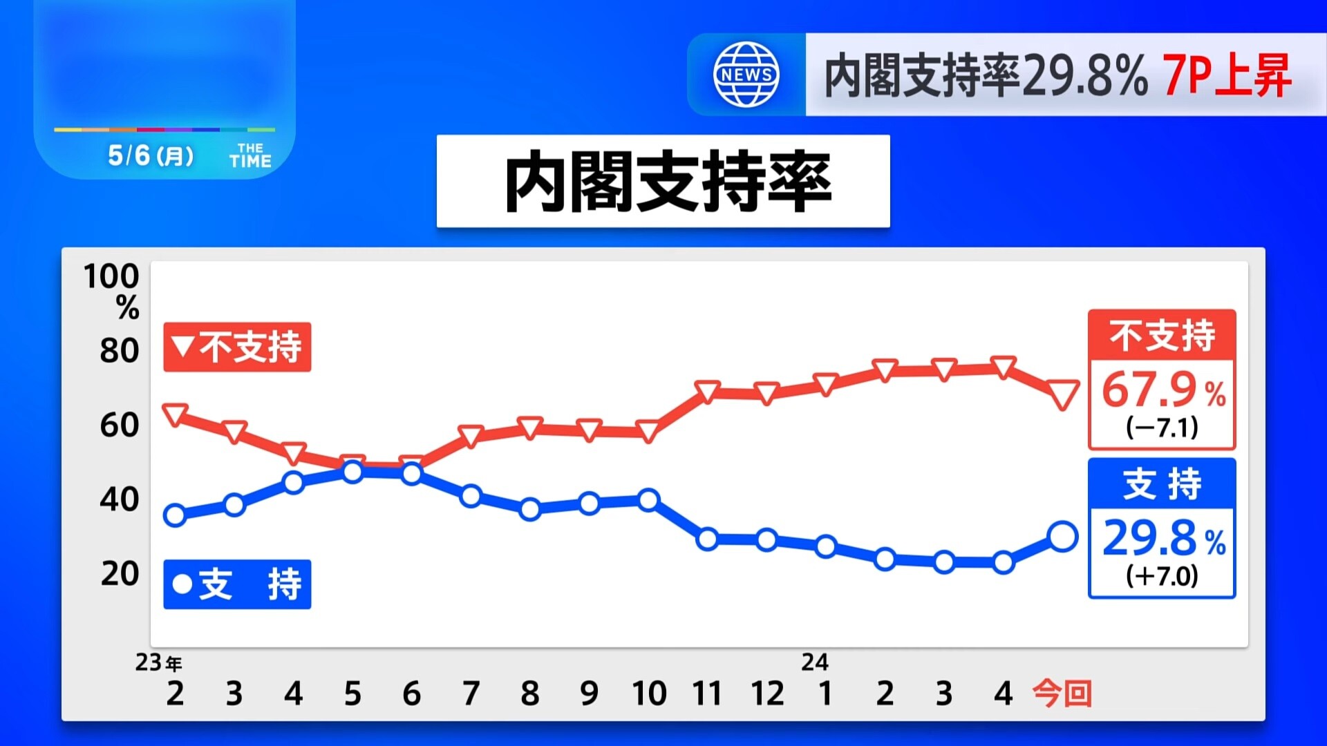 岸田内閣の支持率29.8% 前回調査より7.0ポイント上昇 5月JNN世論調査