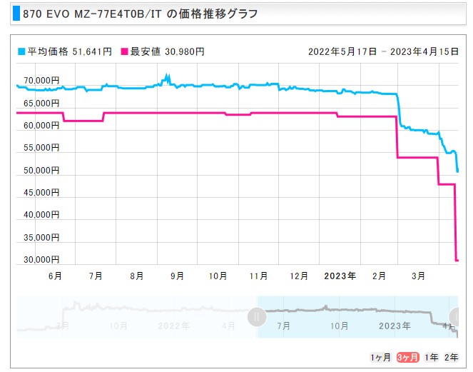 【朗報】サムスンのSSDの価格が急落 「870 EVO 4TB」が3万980円に