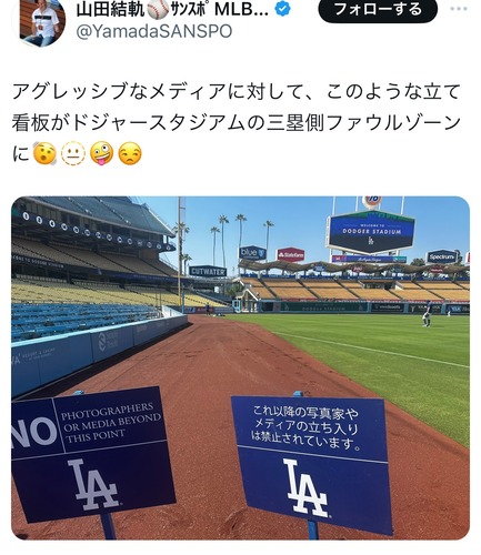 【悲報】ドジャースタジアム、何故か日本語で立ち入り禁止の注意看板を出してしまう