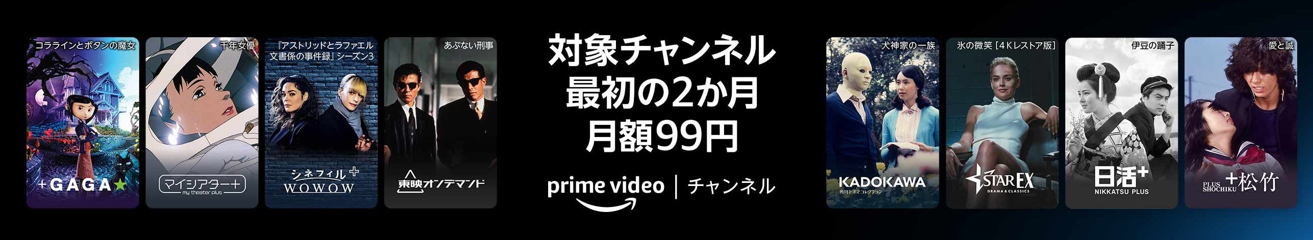 Amazonプライムビデオ「対象のチャンネル最初の2か月は月額99円キャンペーン」を開始 「角川シネマコレクション」や「シネフィルWOWOW プラス」など対象【6/18まで】