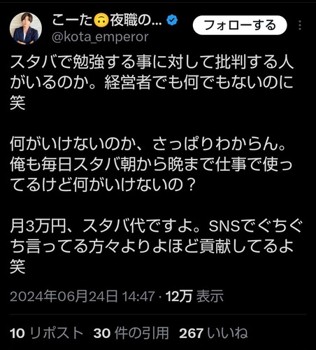 — こーた🙃夜職のミカタ/行政書士 (@kota_emperor) June 24, 2024
