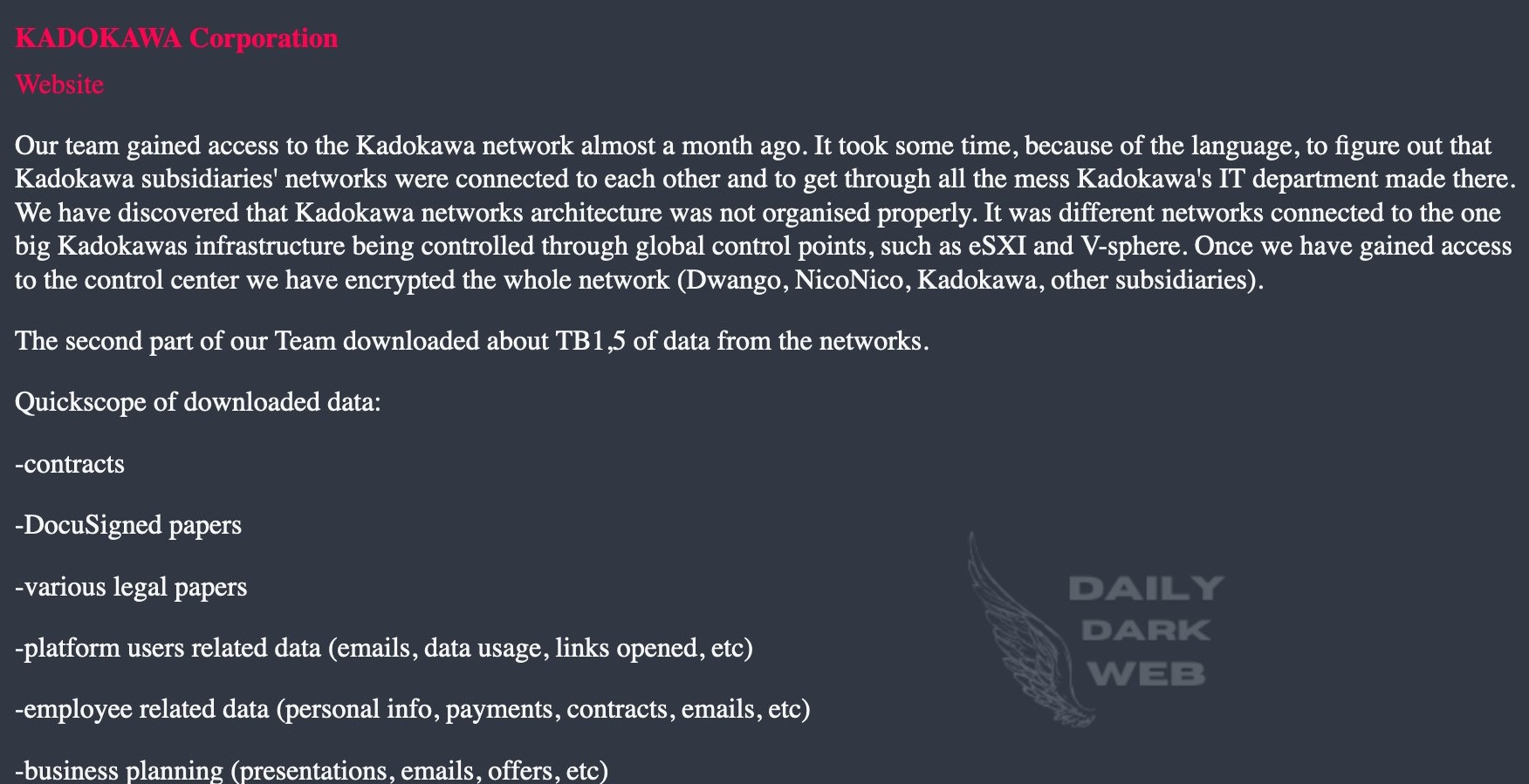 ロシア系ハッカー集団のブラックスーツ、KADOKAWAにサイバー攻撃したことを発表「金を払わないなら7月1日に公開する」