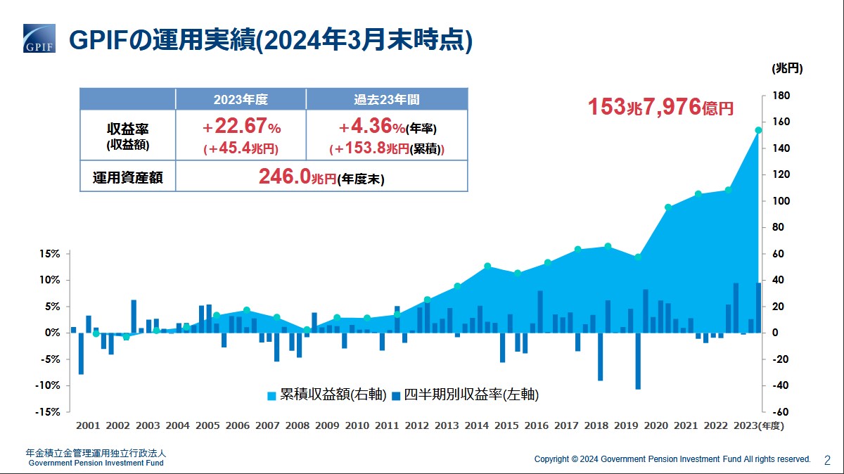 年金運用のGPIF、2023年度は45兆4153億円のプラス