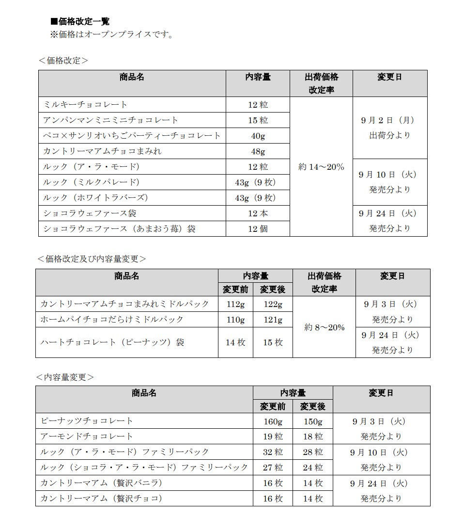 【悲報】不二家、9月にミルキーチョコレートなど値上げ カントリーマアムは内容量さらにカットして14枚に