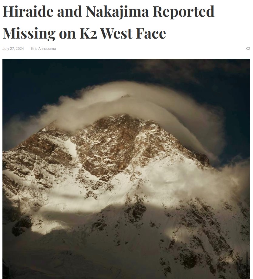 世界屈指の登山家 平出和也氏と中島健郎氏、K2で滑落 安否不明