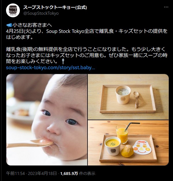 【悲報】スープストックが離乳食無料提供を全店に拡大したらTwitter大荒れ 「落ち着けないから行きたくない」「最悪 客層悪くなるなあ」