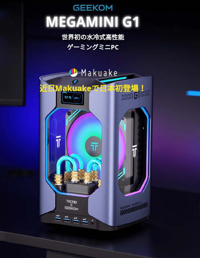 TECNO×GEEKOM、水冷式のゲーミングミニPC「MEGAMINI G1」を日本のMakuakeで販売へ